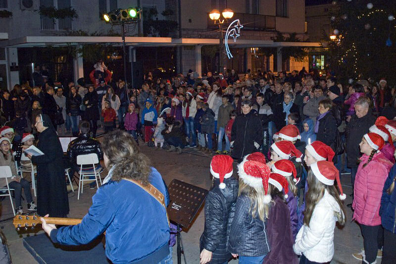 24.12.2014. - Na Trgu kralja Tomislava sinoć je četvrti put održan prigodan božićni program na kojemu su nastupili KUD Metković, Dječji crkveni zbor Župe sv. Ilije, Dječji crkveni zbor Župe sv. Nikole, Nikica Ilić i Maja Jerković, Klapa Žveljarin, Prima Vista, Zvjezdice – Župa sv. Ilije i Mandolinski orkestar KUD-a Metković.