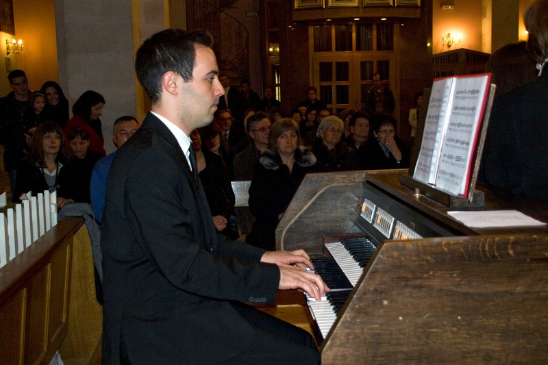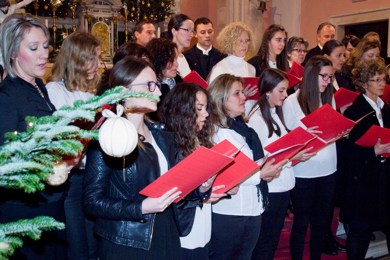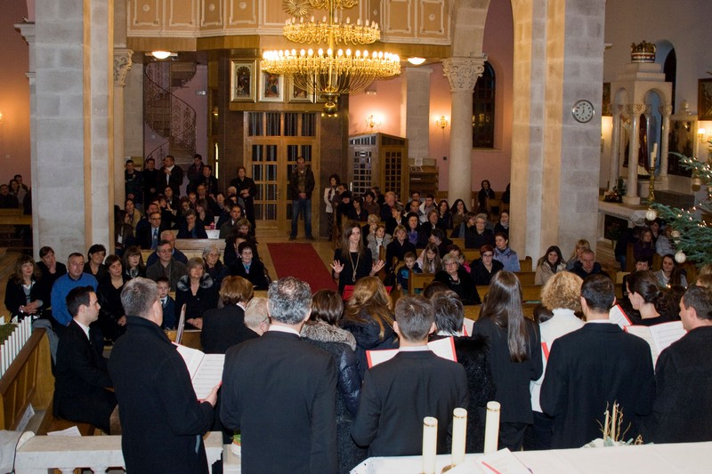 Metković, 26.12.2014. - Sinoć nakon večernje mise u crkvi sv. Ilije svoj Božićni koncert pod ravnanjem Ivane Petrov održao je Mješoviti zbor Župe sv. Ilije. Pjevače je na orguljama pratio Roko Veraja koji je i ravnao izvedbom jedne pjesme.