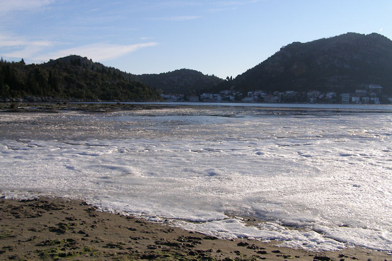 Metković, 1.1.2015. - Budući da često boravi na Ušću, Bariši Iliću vjerojatno nije ni mogao izmaknuti rijedak prizor smrznuta mora na plićacima od Ušća do Blaca.
