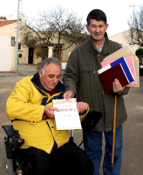 Gospodin Tošić je pola godine uz pomoć gospođe Sylvie Demeulle provodio akciju među svojim kolegama invalidima, što je rezultiralo sa prikupljenih 27 invalidskih kolica od čega devet elektromotornih, te raznim drugim ortopedskim i medicinskim pomagalima potrebnim invalidima. Akciji su se pridružili bolnica i Socijalna skrb iz Lucona, te udruge invalida s područja Laroche u kojem se nalazi Lucon. Iz Lucona sa atlantske obale doputovali su tajnik UTIM-a Antiša Puljević i pročelnik za socijalnu skrb grada Metkovića Vatroslav Vugdelija koji su tamo organizirali utovar i prijevoz donacije čiji volumen je oko 30 metara prostornih. Radi se o polovnoj, ali dobro očuvanoj opremi koja će svakako dobro doći osobama sa tjelesnim oštećenjima iz Metkovića i okolice. Suradnja dviju udruga će se nastaviti jer već ima naznaka kako će u sljedećoj akciji iz Francuske stići određeni broj računala. Metkovci kažu da jedva čekaju ljeto i uzvratni posjet kolega iz Francuske. U UTIM-u su nam rekli da su dobili još neke vrijedne donacije. Osim što je Poglavarstvo grada Metkovića donijelo odluku da će umjesto tradicionalnog božićnog domjenka ove godine novac predviđen za nj uplatiti na račun UTIM-a, treba spomenuti i vrijednu donaciju od 80 tisuća kuna Instituta građevinarstva Hrvatske za akciju "Pomozimo Marijani". Antiša Puljević i Vatroslav Vugdelija sa gđom Sylvie Demeulle i đosp. Tošićem Sylvie Demeulle i lija Tošić dobili su zahvalnice.