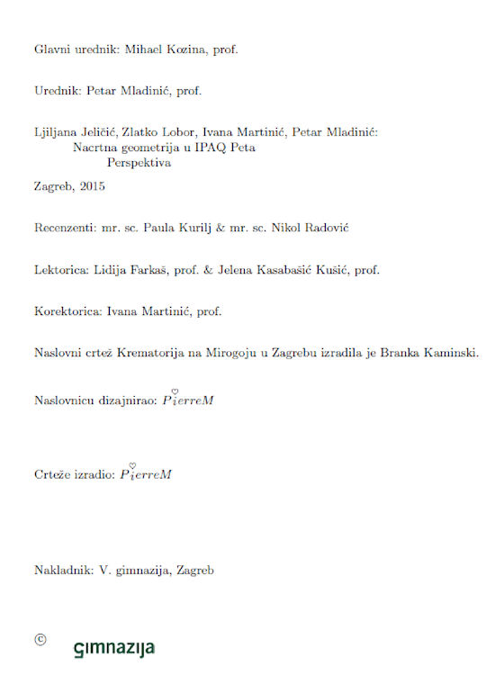 Potprojekt matematika razradio je kurikul za nacrtnu geometriju i vježbe s pripadnim materijalima vezanim uz perspektivnu geometriju. Razvijena je metodologija praćenja i ocjenjivanja učenika pomoći „klikera“ (Classroom Response system). Zbirka vježbi izrađena je u tiskanom i u elektronskom obliku.