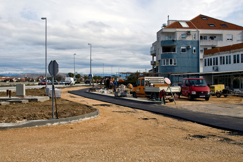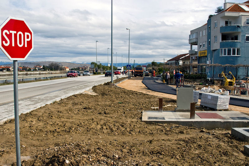 Metković, 26.2.2015. - Pri kraju su radovi na rekonstrukciji raskrižja ulica A. K. Miošića i Splitske, koje je donedavna vozačima i pješacima predstavljao veliku opasnost.