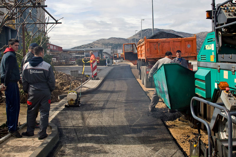 Danas smo fotografirali asfaltiranje pristupnoga puta kojim će se stanari okolnih zgrada uključivati u promet na državnu cestu A9 (Splitska ulica), a napomenimo i da je u sklopu radova izvedena i odvodnja oborinskih voda na prvih 400 metara Ulice A. K. Miošića. Nešto više od 50 % troškova snosit će Grad Metković jer je ostatak novca osigurao iz EU fondova preko Ministarstva regionalnoga razvoja.