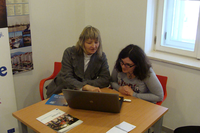 Predstavnici Udruge Europski dom Dubrovnik nakon Gimnazije posjetili su Gradsku knjižnicu Metković, u kojoj su odgovarali na građanima zanimljiva pitanja. Informatorice Adriana Kremenjaš Daničić i Katarina Mikjel govorile su o osnutku Europskoga doma u Dubrovniku, okupljenima objašnjavale načine potrage za poslom u Europi te ukazale na mogućnosti školovanja i usavršavanja.