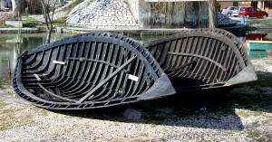 Vidonjske lađe sunčaju se uz Norin pred prijevoz u skladište u Opuzenu