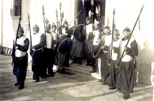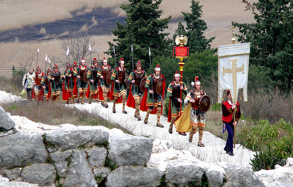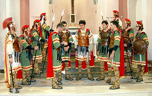6.2.2006. - Nakon šesnaest stoljeća rimski vojnici ponovno su osvanuli na naronitanskim zidinama. Riječ je o žudijama ili žudijima, kako sebe nazivaju, iz Vodica čija odora i oprema prilično vjerno oponaša onu rimskih legionara.