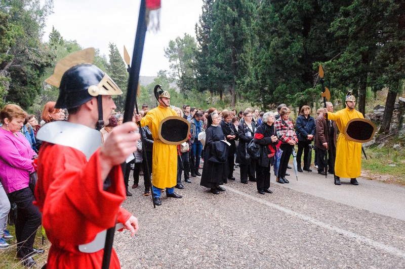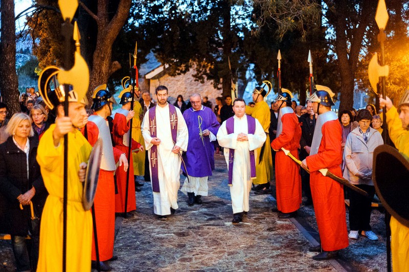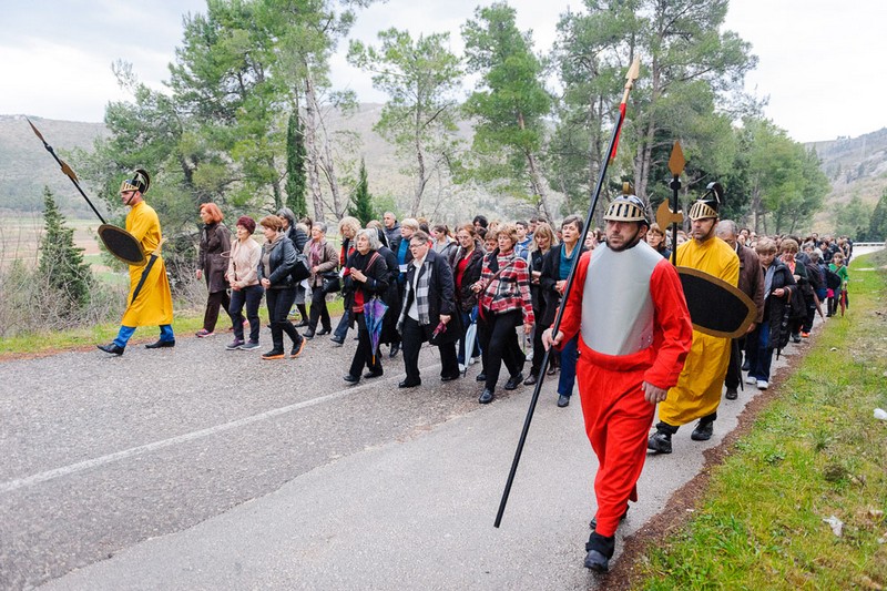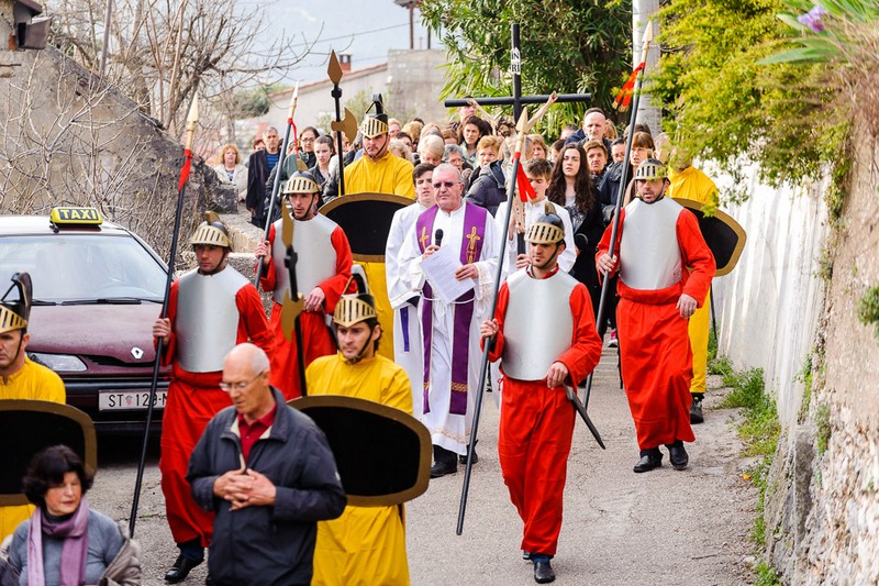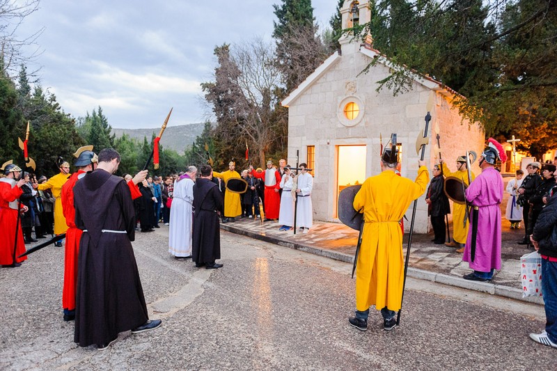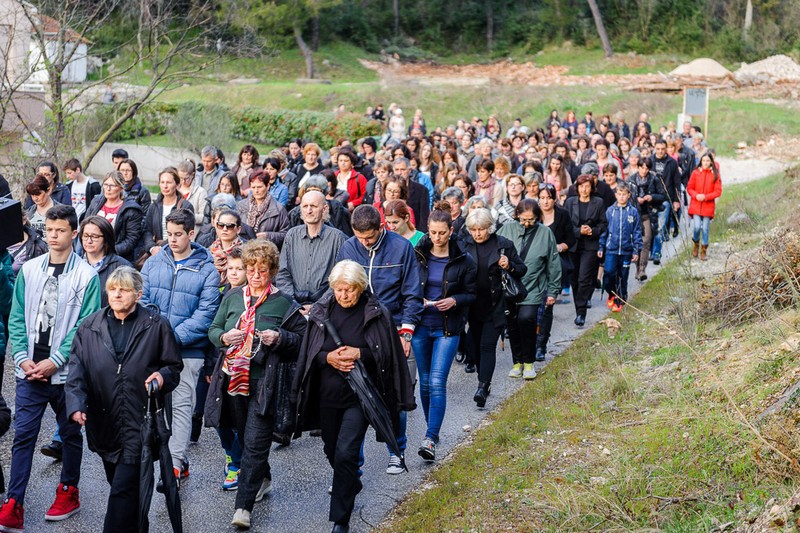 U pobožnosti križnoga puta, što ga je uz asistenciju župnih vikara fra Lukice Vojkovića i fra Kristijana Perkovića te mladih predvodio župnik fra Petar, sudjelovale su žudije, ministranti, članovi župnih zborova te mnoštvo vjernika iz svih dijelova župe sv. Ilije. Od župne crkve starim dijelom grada molila su se i razmatrala žalosna otajstva Gospine krunice. Dolaskom na periferiju u Podkraj započela je pobožnost križnoga puta na četrnaest postaja do Dubravice na kojima se razmišljalo, molilo, pjevalo, preispitivalo svoj odnos prema Bogočovjeku i njegovoj neizmjernoj ljubavi koju je pokazao prema svakome od nas te svoju ljubav prema nama na Golgoti potpisao svojom krvlju i mučeničkom smrću. Od postaje do postaje molitvom se vapilo za sve patnike, nepravedno osuđene, stare i bolesne, nevino progonjene, osamljene, za osobe posvećena života, za nerođenu djecu….