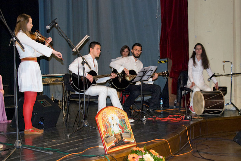 Crkveni hor Sveti Vasilije Ostroški pod ravnanjem je Stojke Gudelj koncert započeo pjesmom Hvalite Gospoda i nastavio se duhovnim pjesmama koje se izvode na liturgiji. Posljednja je bila prigodna pjesma Hristos voskrese.