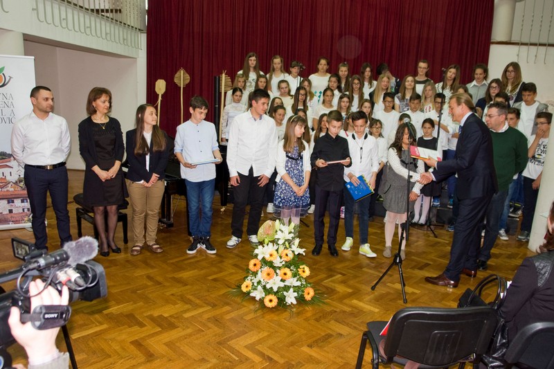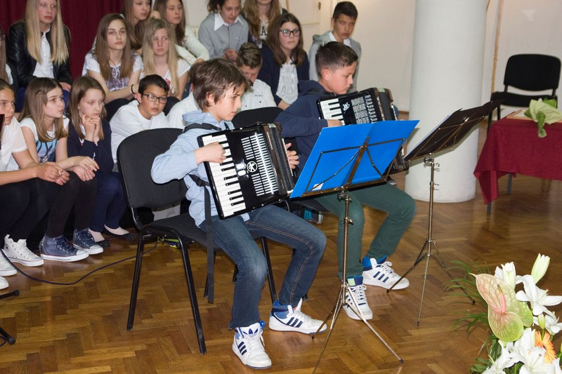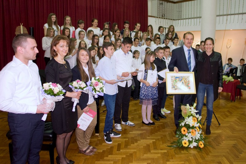 Ravnatelj Knežević je potom pozvao učenike koji su tijekom ove školske godine uspješno sudjelovali na natjecanjima i uručio im diplome. To su: Toma Ujdur, Ante Bukovac, Antea Filipa Stojić, Ivan Fran Stojić, Filip Kežić i Petra Rebac. Isto tako, diplome je uručio i njihovim mentorima Mirku Violiću i Erni Čizmić Rebić te klavirskim suradnicima Karmen Stojić i Romeu Hercegu.