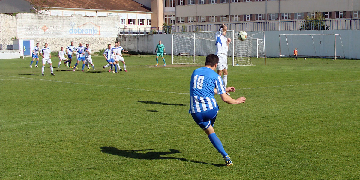 Metkovci su krenuli samopouzdano, no već polovinom poluvremena Kaleb faulira gostujućeg igrača pa je dosuđen kazneni udarac koji izvodi Čulić. Neretvin vratar Hodžić brani i kratko odbija do Škopljanca koji u 16. minuti postiže pogodak za vodstvo gostiju. Iznenađena Neretva pojačava pritisak, ali ne uspijeva izjednačiti.