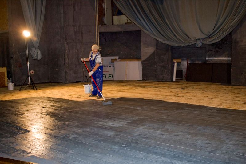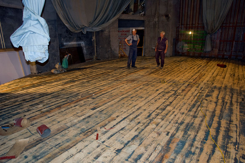 29.4.2015. - Pozornica u kazališnoj dvorani GKS-a uskoro će osvanuti u novome ruhu. Stari plavi horizont bit će zamijenjen novim, a uređuje se pod pozornice.