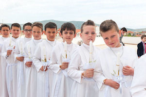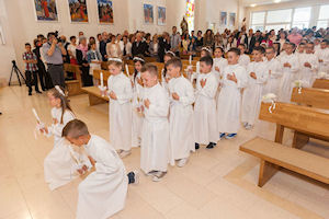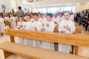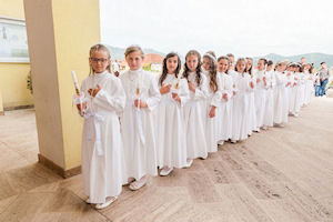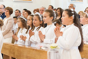 4.5.2015. - Jučer je u Župi sv. Nikole Biskupa šezdeset prvopričesnica i prvopričesnika pristupilo prvoj svetoj pričesti, sakramentu koji im je tijekom svečane euharistije u župnoj crkvi sv. Nikole podijelio župnik don Senko Antunović.