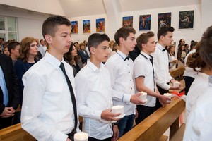 4.5.2015. - U subotu je u župnoj crkvi sv. Nikole Biskupa šezdeset dvoje krizmanika primilo sakrament svete krizme što im ju je podijelio generalni vikar Splitsko-makarske nadbiskupije mons. Miroslav Vidović, koji je u zajedništvu s don Antom Antunovićem i fra Antom Crnčevićem te roditeljima i kumovima krizmanika, kao i ostalim vjernicima predslavio svetu misu. Fotografije nam je ustupio Foto Veraja.