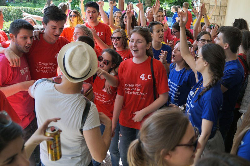 Metković, 20.5.2015. - Danas su maturanti metkovskih srednjih škola bučno i veselo proslavili završetak nastave. Mi smo ih popratili u njihovoj ophodnji gradom. Foto: Z. Mateljak