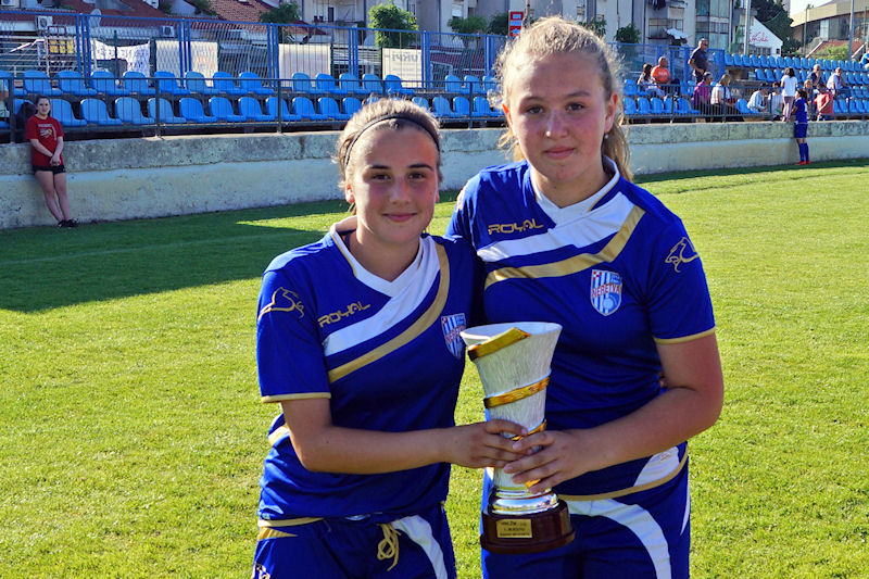 Poslije utakmice pehar im je uručio Nino Šešelj, član Upravnoga odbora ŽNK Neretva i jedan od inicijatora osnivanja ženskoga nogometnog kluba. Nakon službenoga uručenja pehara uslijedila je pjesma i slavlje igračica, trenera i Uprave te vjernih navijača. Čestitamo im i želimo im sreću idući tjedan u Otočcu u kojemu će se natjecati u razigravanju za kadetskoga prvaka Hrvatske.