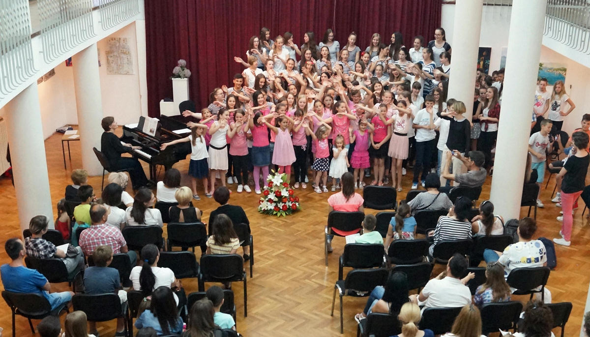 11.6.2015. - Galerija GKS-a sinoć je 11. godinu zaredom ugostila dječje zborove osnovnih i glazbenih škola iz Metkovića i Ploča. Tijekom pedesetminutnoga koncerta osnovci su otpjevali 14 pjesama, od tradicionalnih do onih koje su skladali kompozitori klasične glazbe.