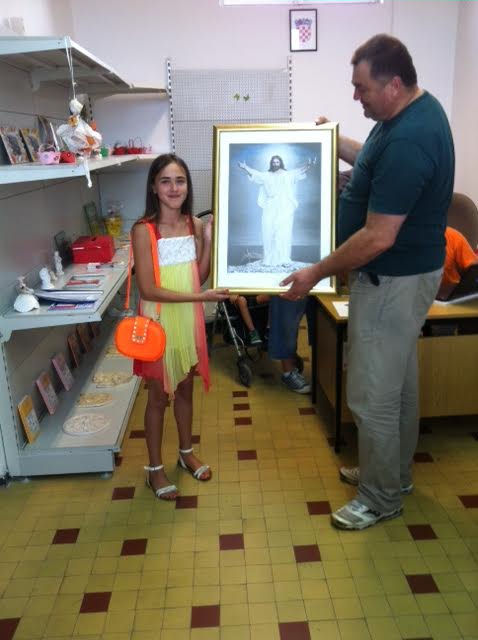 Predsjednik Udruge Leptirići Marijo Jurković zahvalio joj je na donaciji i darovao joj grafiku Krist na žalu – kažu u Udruzi Leptirići.