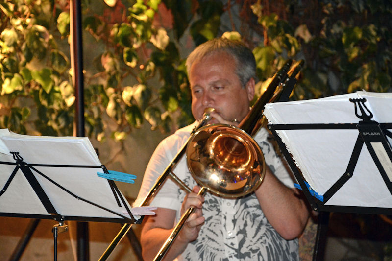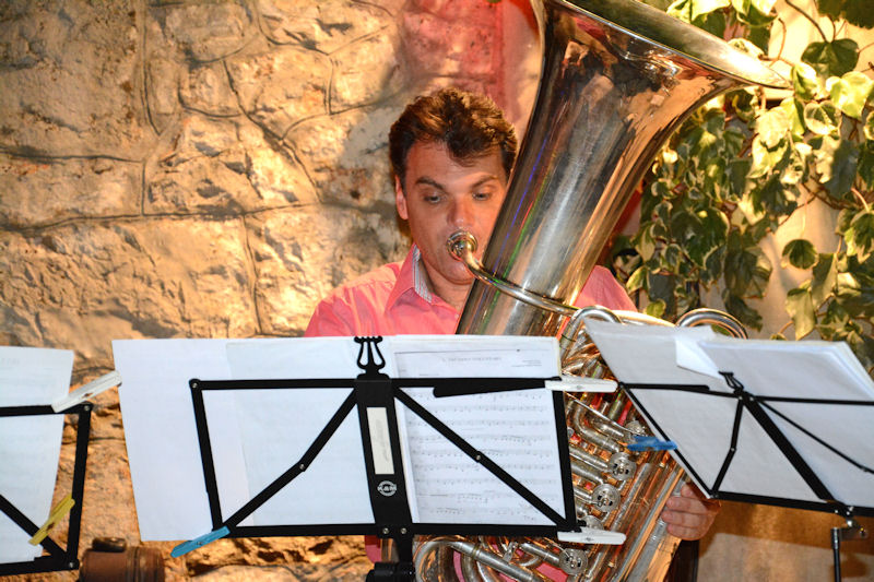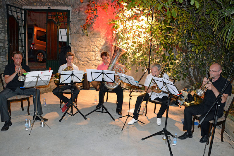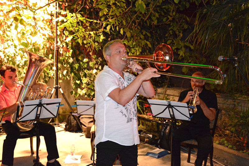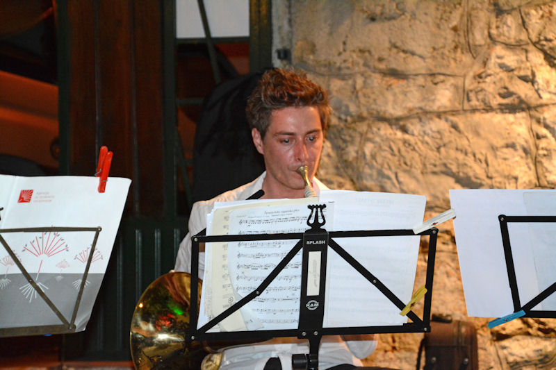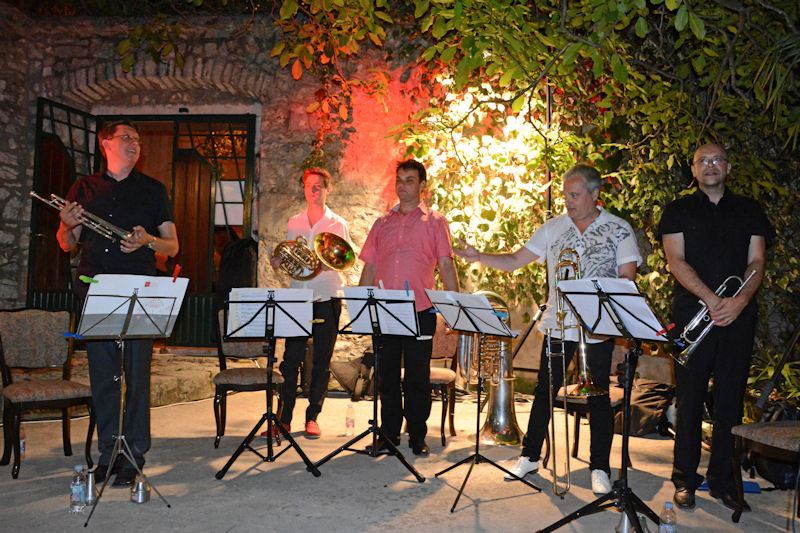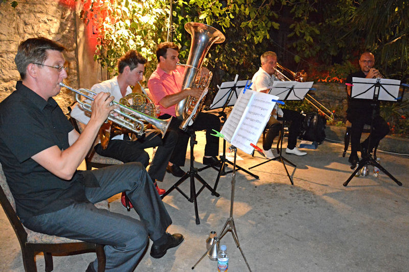 18.7.2015. - Nakon vrhunskoga muziciranja što ga je Metkovcima prije desetak dana u Gradskome parku pružio Jazz-orkestar HRT-a, u četvrtak je to u dvorištu obitelji Barbir ponovio puhački kvintet Simply brass.