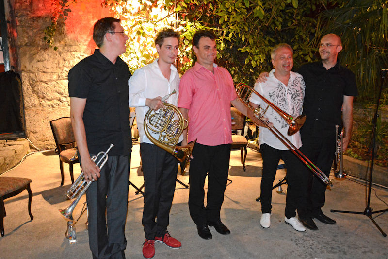Goste iz Zagreba predstavio je ravnatelj Ustanove za kulturu i sport Milan Kkapović, a nastupili su u sastavu: Tomica Rukljić – truba, Rudolf Homen – truba, Nikola Zver – rog, Alan Bošnjak – trombon i Joe Kaplowitz – tuba. Posljednjemu je to drugi metkovski nastup u deset dana jer je u Parku bio nastupio kao član HTR-ova orkestra.