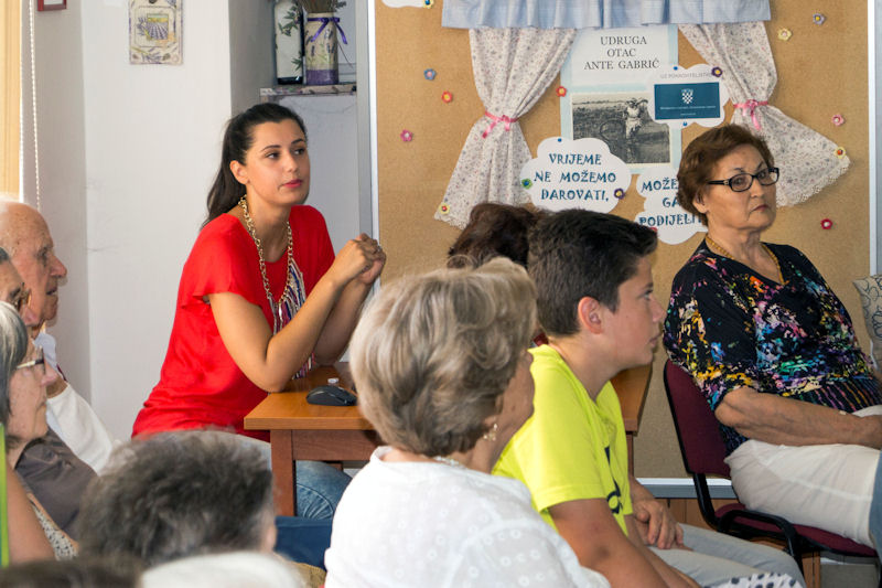 2.8.2015. - U okviru organiziranih dnevnih aktivnosti za starije osobe u prostorijama Udruge Otac Ante Gabrić mag. psihologije Ana Vučković održala je prezentaciju U društvu je lakše, tijekom koje je poseban naglasak stavljen na dobrobit društvene potpore te njezinu važnost za zdravlje, sreću i suočavanje sa stresom u svakodnevnom životu.