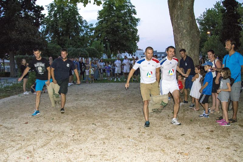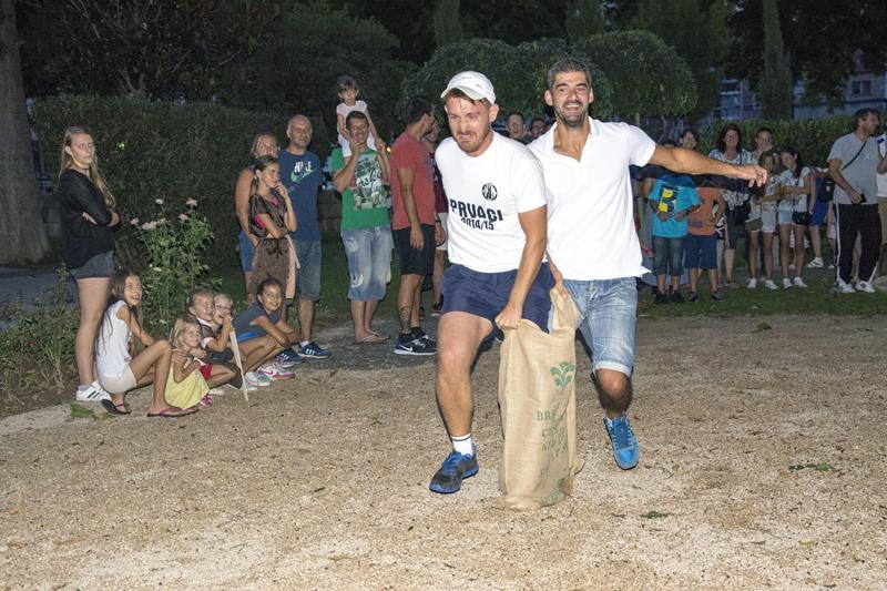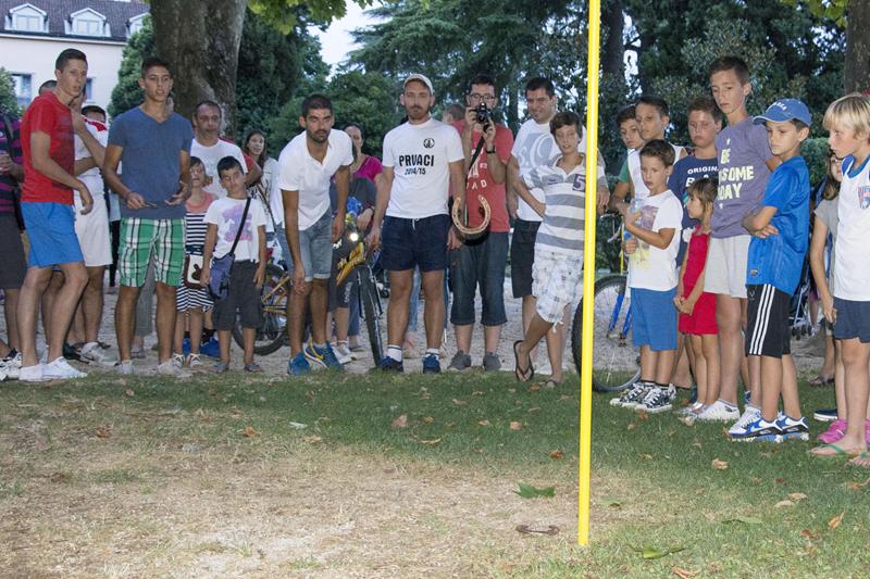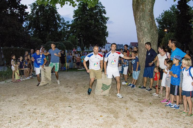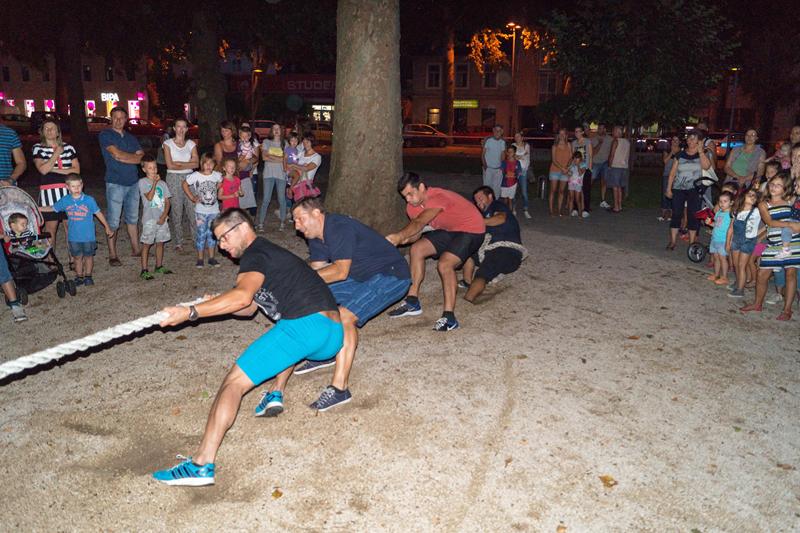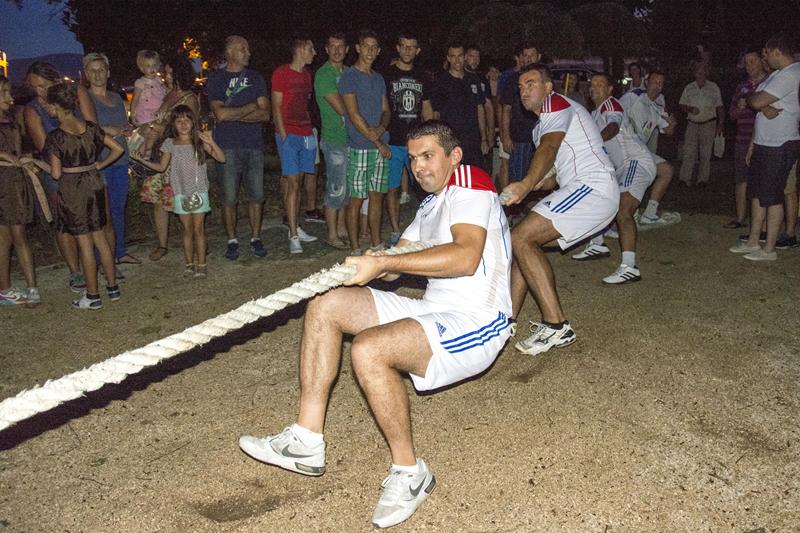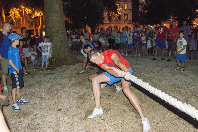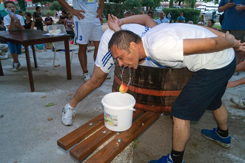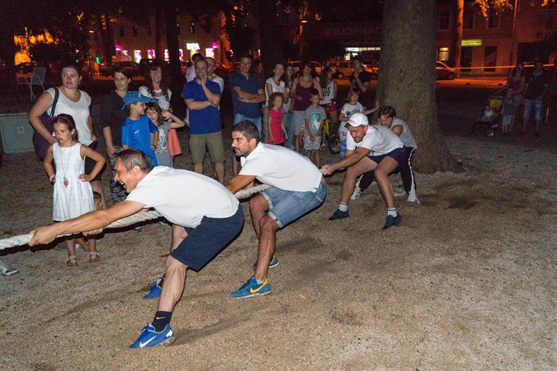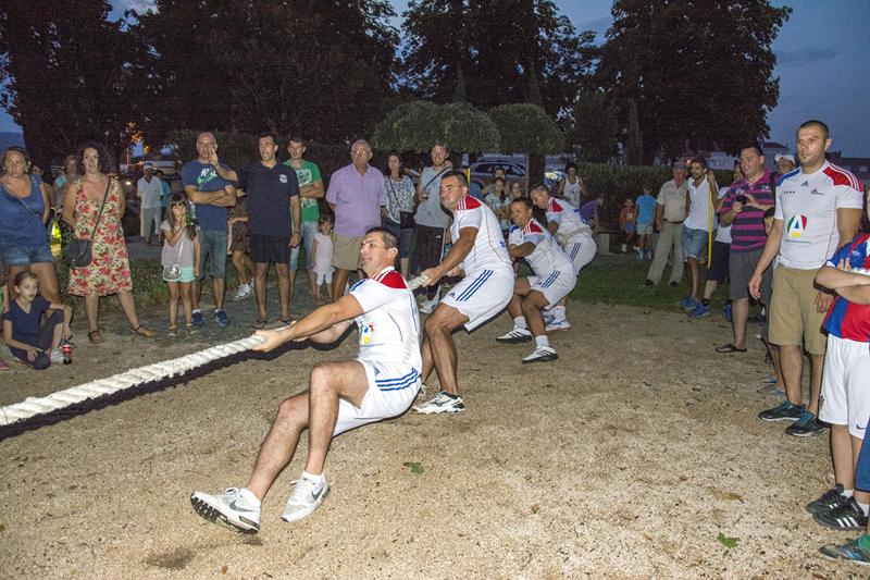 Metković, 8.8.2015. - Jučer je kiša omela održavanje viteških igara za djecu u Gradskome parku, ali su predvečer održane igre za odrasle, koji su se natjecali i vađenju jabuka iz maštela, obaranju ruke, bacanju potkove, trčanju u vrećama i potezanju konopa.