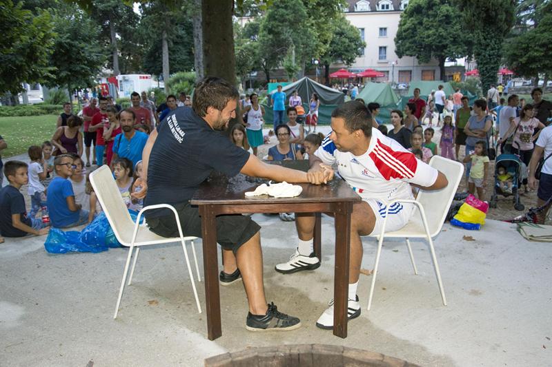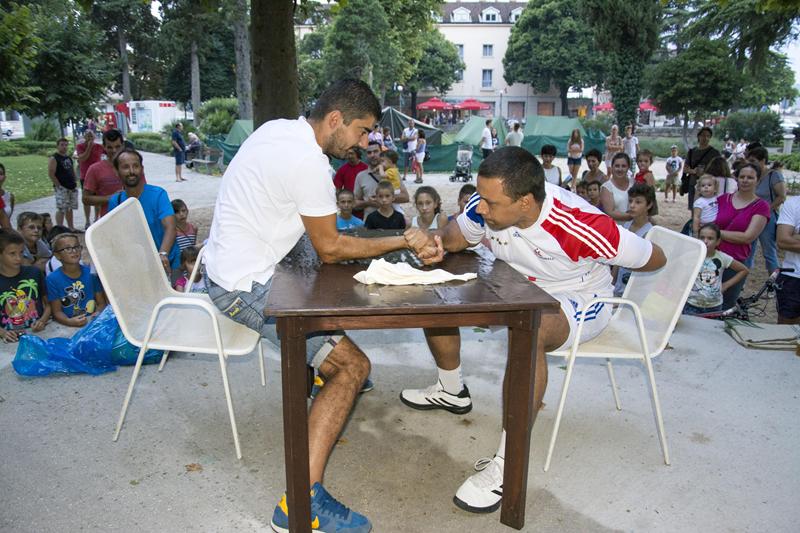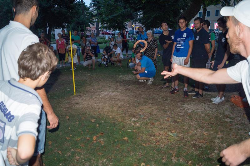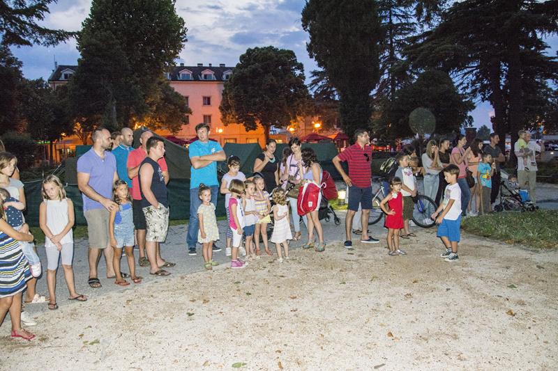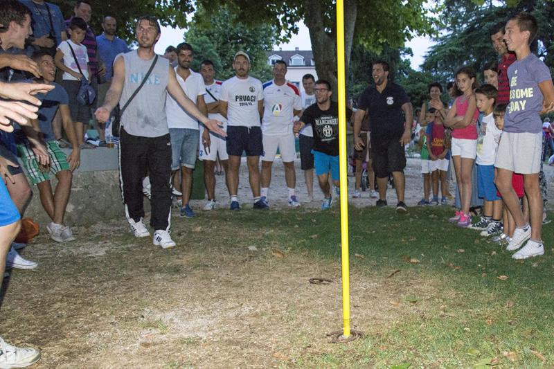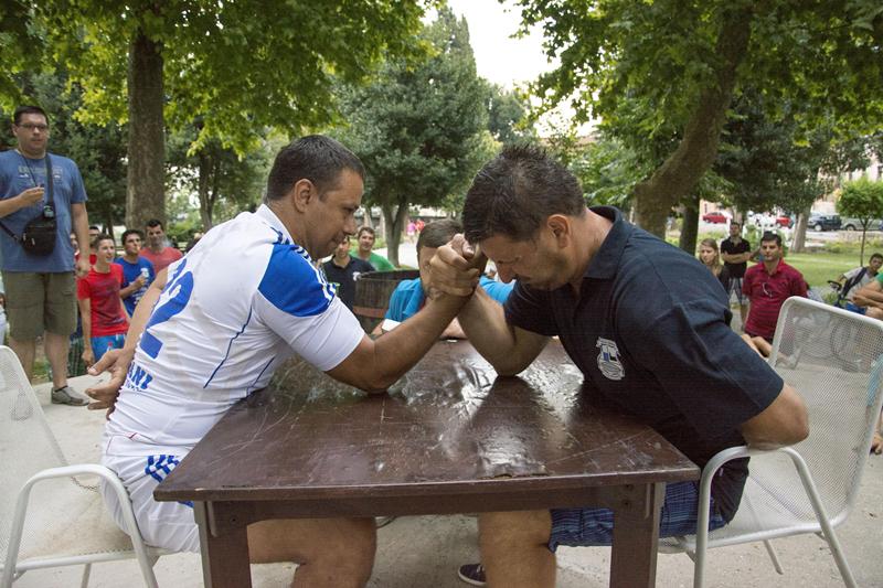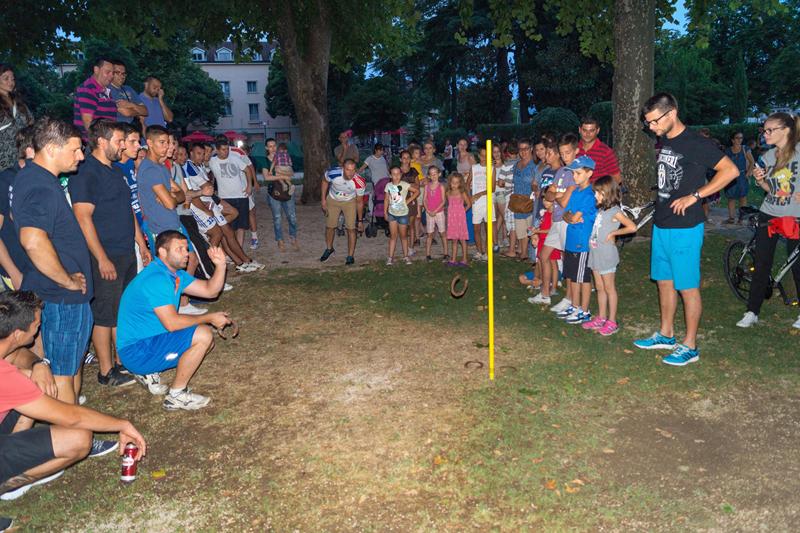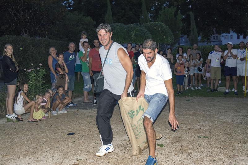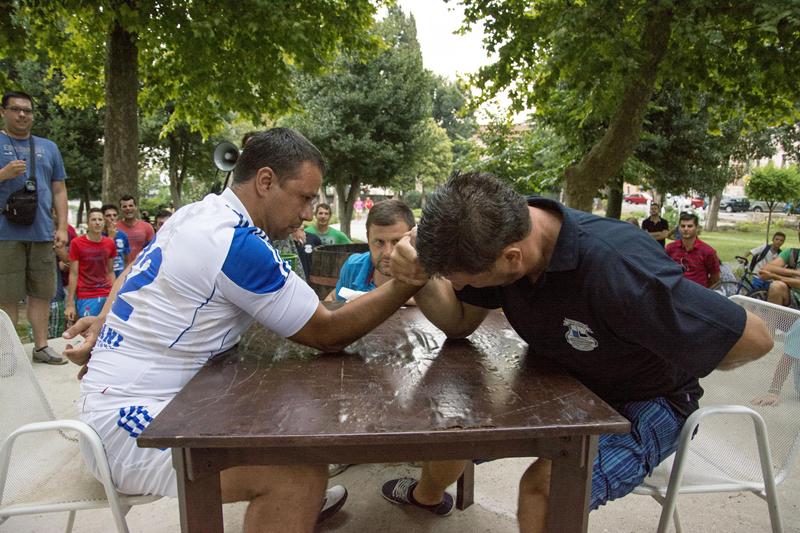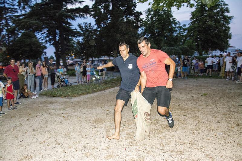 Metković, 8.8.2015. - Jučer je kiša omela održavanje viteških igara za djecu u Gradskome parku, ali su predvečer održane igre za odrasle, koji su se natjecali i vađenju jabuka iz maštela, obaranju ruke, bacanju potkove, trčanju u vrećama i potezanju konopa.