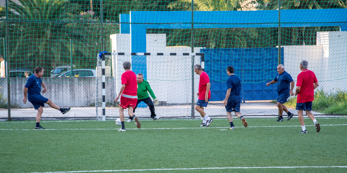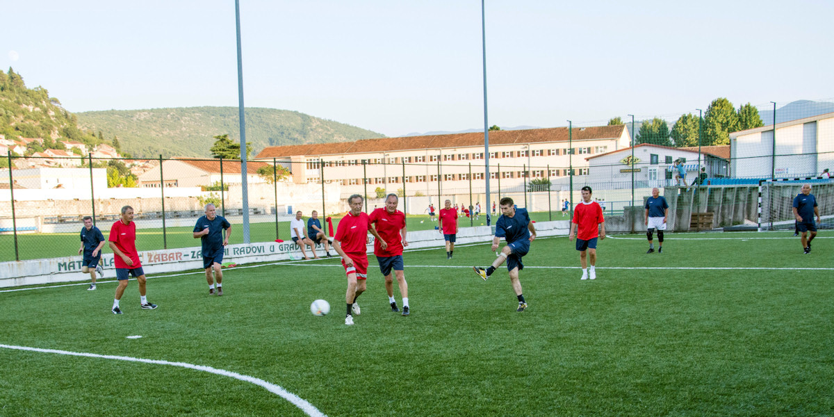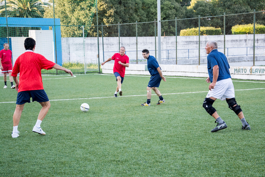 30.8.2015. - Na obnovljenome malonogometnom igralištu NK Neretva prije koji dan zatekli smo skupinu strastvenih rekreativaca u zlatnim godinama (prosjek odokativno izračunajte) koji već dugo ni za što na svijetu ne propuštaju svoje tjedne susrete. Riječ je o starim sportskim prijateljima iz doline Neretve, koji utakmice uglavnom igraju u Opuzenu, a sada su došli isprobati novu umjetnu travu u Metkoviću.