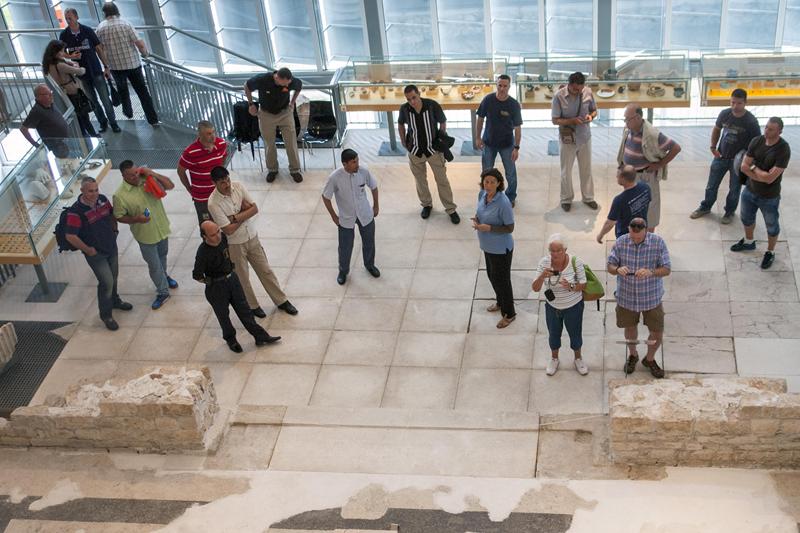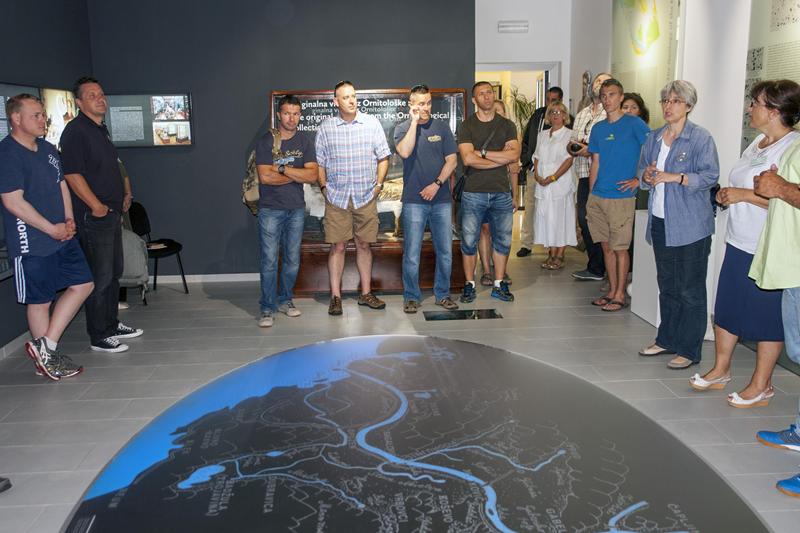 Kako u Vidu kiša nije omogućila duže zadržavanje pokraj Spomenika Domagojevi strijelci tako je program nastavljen u Arheološkom muzeju Narona. Tamo im je na engleskome jeziku održano stručno predavanje o povijesti antičke Narone. Obilazak znamenitosti doline Neretve završen je plovidbom u lađi prema jezeru Kuti.