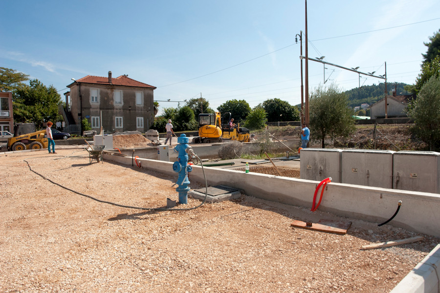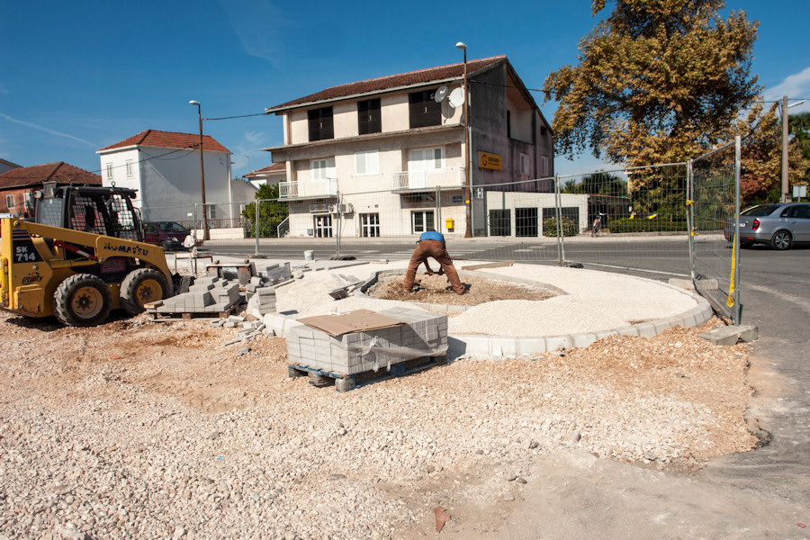 Na fotografijama možete vidjeti radove na izgradnju parkirnih mjesta, nakon čega će se položiti kanalizacija i asfaltni sloj. Ponavljamo i dvije stare fotografije toga raskrižja. Na prvoj se vidi početak današnjega Puta Narone gledano iz podvožnjaka, a na drugoj je talijanska straža na početku ulice Zrinskih i Frankopana.
