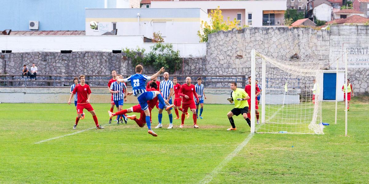 Domaćini su većim posjedom lopte stalno prijetili gostima. U 43. minuti Brečić loptu ubacuje u gužvu pred protivnička vrata, u čemu se Bubalo najbolje snalazi i postiže pogodak za vodstvo domaćina.