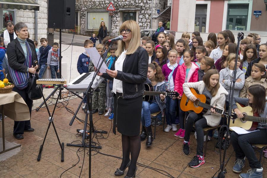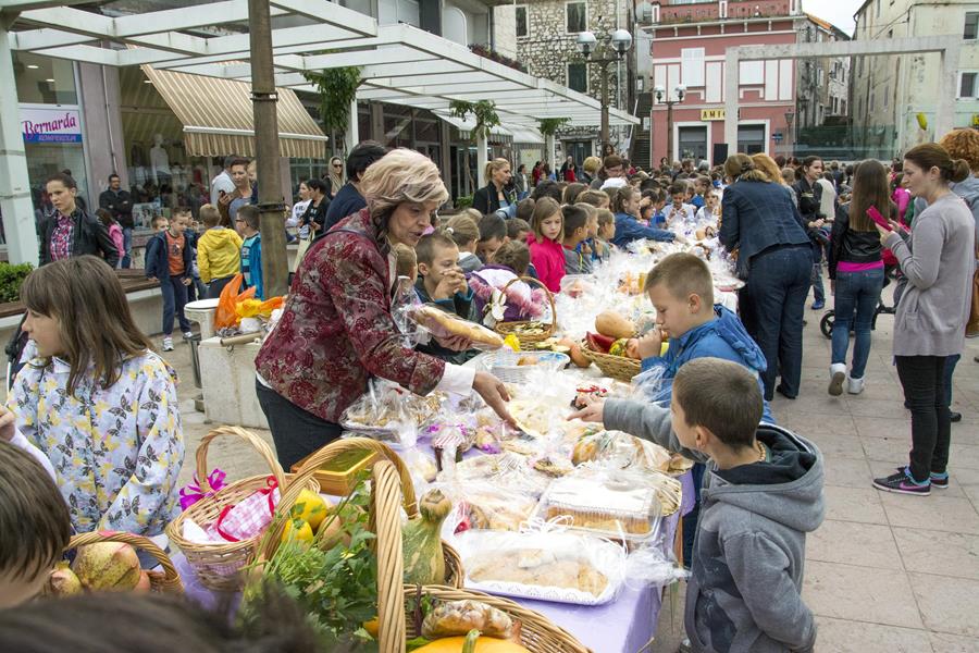 20.10.2015. - Na Trgu kralja Tomislava jutros je OŠ don Mihovila Pavlinovića održala tradicionalnu manifestaciju Dani kruha i zahvalnosti za plodove zemlje u kojoj su pred prepunim štandovima sa svojim učiteljicama i učiteljima sudjelovali učenici te škole.