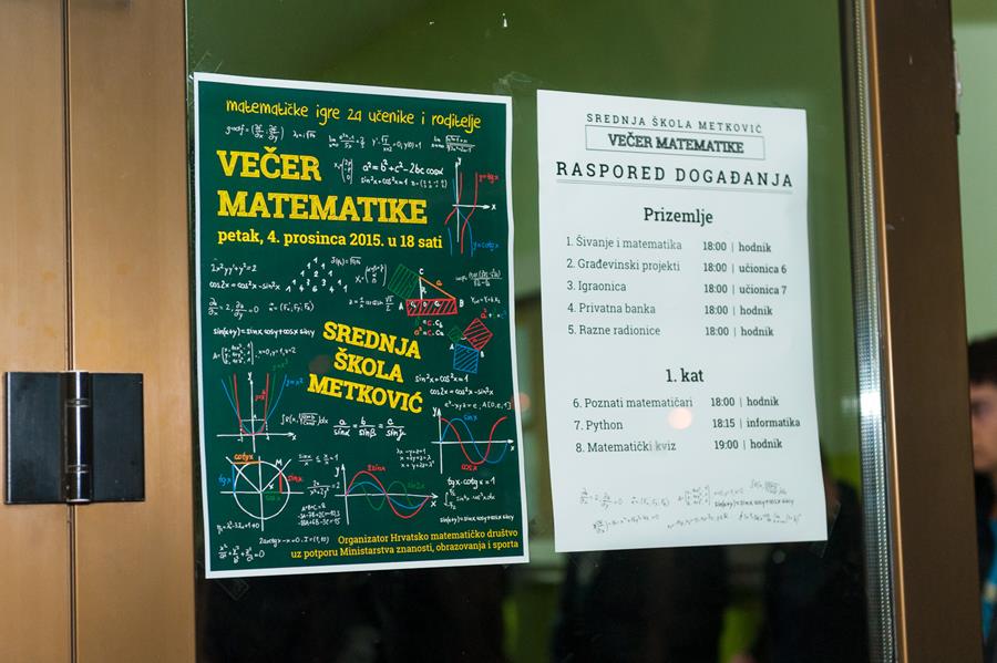 5.12.2015. - Večer matematike je manifestacija koja se na državnoj razini održava treći put, a sinoć je prvi održana u Srednjoj školi Metković.