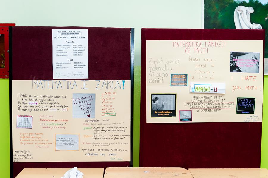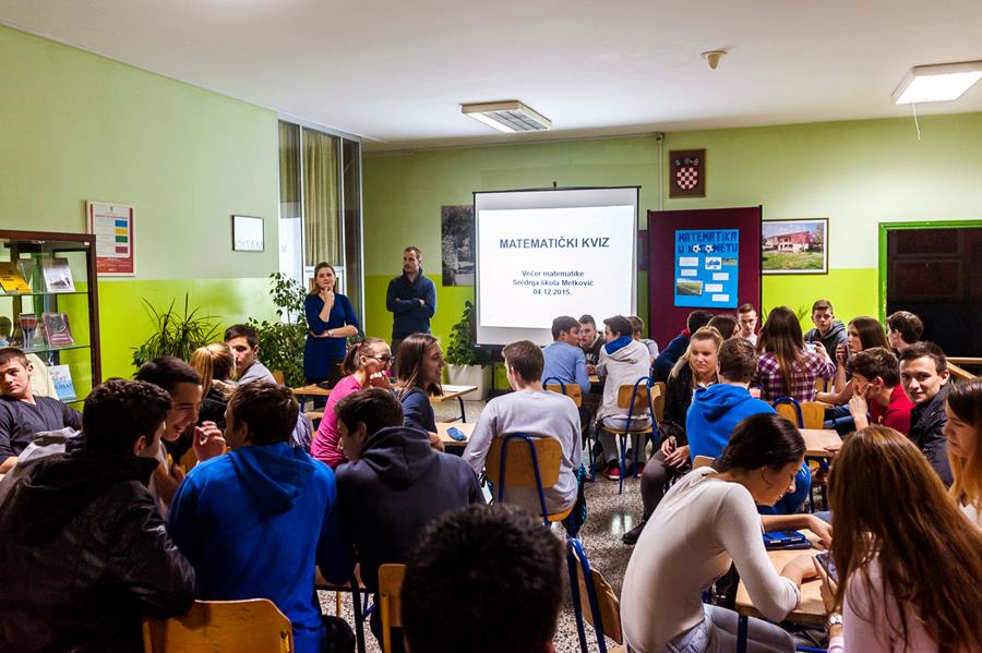 Tako se sinoć u Srednjoj školi moglo sudjelovati u raznim radionicama: modeli tijela, simulacija banke, šivanje i matematika, predavanje Poznati matematičari, optičke iluzije, logičke igre te najzanimljivije i najposjećenije od svega Matematički kviz. Organizator i idejni začetnik matematičkih večeri je Hrvatsko matematičko društvo, a za uspješnu provedbu u Srednjoj školi Metković zaslužni su profesori matematike, kojima su pomogle neki kolege profesora ostalih predmeta. Učenici koji su pokazali zavidno znanje zaslužili su i nagrade, koje su profesori matematike pripremili uz pomoć sponzora. Sudeći prema izvrsnu odzivu učenika kontinuitet te manifestacije u Srednjoj školi Metković zajamčen je u budućnosti.