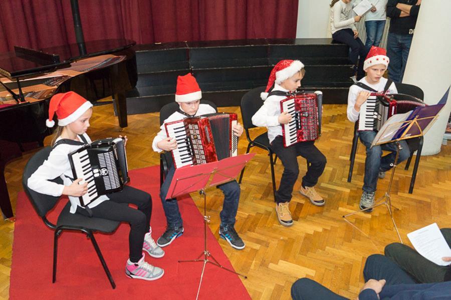Poslije pozdravne riječi ravnatelja Zvonka Kneževića njegovi su učenici od drugoga do šestoga razreda izveli 29 kompozicija. Koncert je zaključio Dječji zbor OGŠ Metković koji je otpjevao Raduj se svijete, Tiho pada večer i u pratnji harmonikaškoga kvarteta Bijeli Božić. Program su pripremili nastavnici: Karmen Stojić, Slađana Knežević, Marija Bukovac, Romeo Herceg, Javorko Popović, Marija Berljak, Zvonko Knežević, Erna Čizmić Rebić, Ankica Dugandžić, Josipa Markota, Marija Jerković, Mirko Violić i Robert Sivrić.