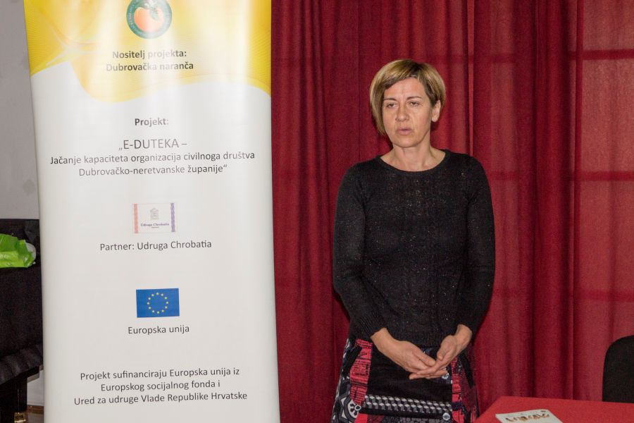Na samom početku konferencije voditelj projekta Damir Fak pojasnio je tijek pripreme i provedbe Projekta, čiji je nositelj Udruga Dubrovačka naranča i koji se u partnerstvu s Udrugom Chrobatia iz Opuzena provodi u sklopu Operativnog programa Razvoj ljudskih potencijala 2007. - 2013., financiranoga iz Europskoga socijalnog fonda. Projektna koordinatorica i volonterka u projektu E-DUTEKA Lara Šiljeg opisala je ciljeve, aktivnosti i rezultate Projekta na kraju jednogodišnje provedbe te predstavila rezultate s radionica koje su se održavale u Dubrovniku, Metkoviću, Pločama, Korčuli i Opuzenu s temom dobrog upravljanja i jačanja kapaciteta lokalnih organizacija civilnoga društva, managementa volontera i pisanja projektnih prijedloga za nacionalne i EU fondove. Ana Cvjetković iz dubrovačke nevladine organizacije DEŠA povezala je projektne aktivnosti s primjerima dobre prakse koji će u konačnici biti podloga za nove, kvalitetne projekte iz Europskoga socijalnog fonda i umrežavanje lokalnih organizacija civilnoga društva na lokalnoj razini, što udruge svrstava na bitan položaj unutar mreže organizacija civilnoga društva država članica.