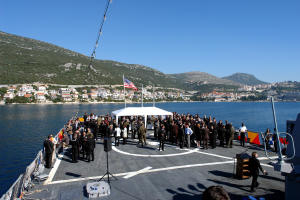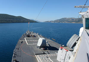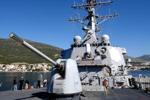 19.10.2006. - Tijekom ovog tjedna u zaljevu Neum-Klek usidren je američki razarač USS Ramage (DDG 61), raspoređen kao dio 2006./2007. udarne grupe nosača Eisenhower. Jučer je brod posjetila velika skupina političara iz susjedne BiH, vojnih atašea i novinara za koje je organizirano razgledavanje broda.
