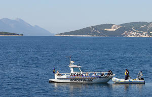 kojega štiti BiH obalna straža i policija. U pozadini, na brdu iznad Duboke, vidi se usjek prilaza budućem mostu Pelješac-kopno.