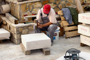 Štokovanje kamenih ploča za pločnik radi se ručno