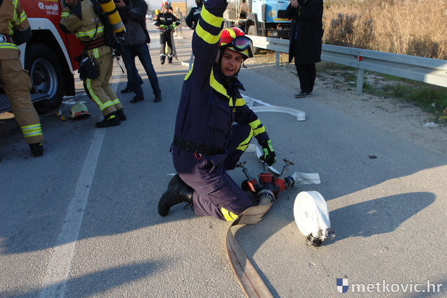 U vježbi su sudjelovali metkovski vatrogasci iz JVP-a Metković i DVD-a Metković te djelatnici Hitne medicinske pomoći, Policijske postaje Metković, gradske tvrtke Metković d.o.o. i HEP-a Metković. Svrha joj je bila uvježbati koordinirano postupanje svih mjerodavnih služba pri akcidentu kakav se može dogoditi kod prevrtanja autocisterne pune plina propan-buta te s unesrećenim vozačem. Županijski vatrogasni zapovjednik Stjepan Simović i načelnik PP Metković Dragan Sršen izjavili su da su zadovoljni provedbom vježbe.