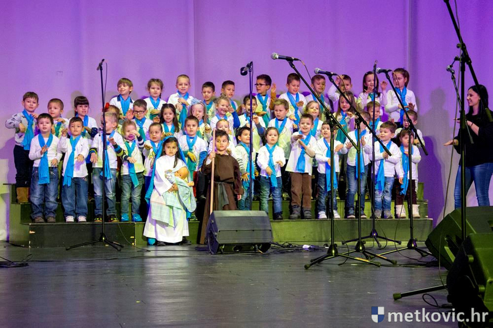 Pred početak, okupljenoj se publici obratio predsjednik Udruge Marijo Jurković, zahvalivši svima koji su došli podržati tu tradicionalnu predblagdansku priredbu. Metkovski kantautor i pjevač Branko Medak prvi je stupio na pozornicu i otpjevao svoje pjesme Repatica i Vukovar, a potom su na nju izašli Pučki pjevači Župe Vidonje, koji su otpjevali tradicionalne pučke napjeve Majko draga, djevice sveta i Padaj s neba. Slijedili su Pučki pjevači Župe sv. Jure iz Desana, koji su otpjevali Gle anđeo Božji.