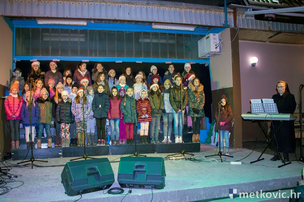 Pred Gradskom sportskom dvoranom prvo su nastupila djeca iz skupina Pčelice i Cipelići DV Metković, potom djeca iz DV Leut, Dječji zbor Župe sv. Ilije, Dječji zbor KUD-a Metković, Klapa Mindel i Ivan Bebić kao DJ Dirka. U jednoj od kućica prodavali su se kolači i primali prilozi za potrebe Caritasa.