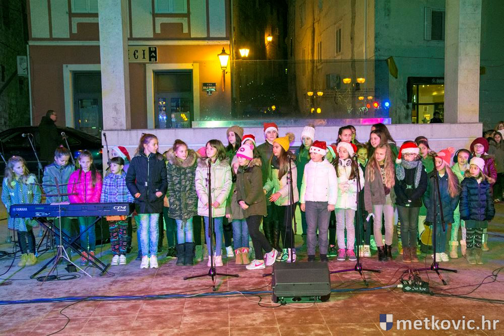Frontmen i vokalist Glazbenog sastava Versi Nikica Ilić otpjevao je Tri kralja jahahu uz pratnju Mandolinskoga orkestra KUD-a Metković. U nastavku su Nikola Družijanić i Tonća Šiljeg otpjevali Radujte se narodi i Svjetla u noći, a potom je Ivana Sršen recitirala Tajna noći. Zbor i bend mladih Župe sv. Ilije otpjevali su Veseli se Majko Božja, da bi potom uslijedili zborovi osnovnih škola don Mihovila Pavlinovića i Kule Norinske koji su zajedno otpjevali Last Christmas. Zbor OŠ Kula Norinska pod ravnanjem voditeljice Zrinke Boras izveo je još Have yourself a Merry little Christmas. Na kraju su nastupile veteranke KUD-a Metković koje su otpjevale Dobra večer ovem stanu i Dječja skupina KUD-a Metković koja je otpjevala Kolendu iz Zatona. Program su oblikovali Milan Kapović i Danijela Baćilo.