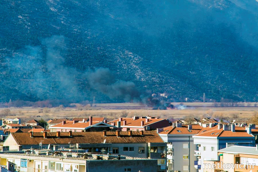 Metković, 29.12.2016. - Jaka bura i dalje pospješuje širenje požara po trščacima u okolici grada. Gori na više mjesta pa vatrogasci interveniraju po potrebi.