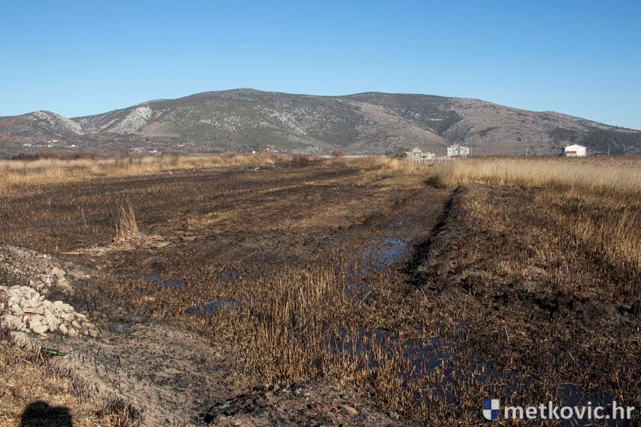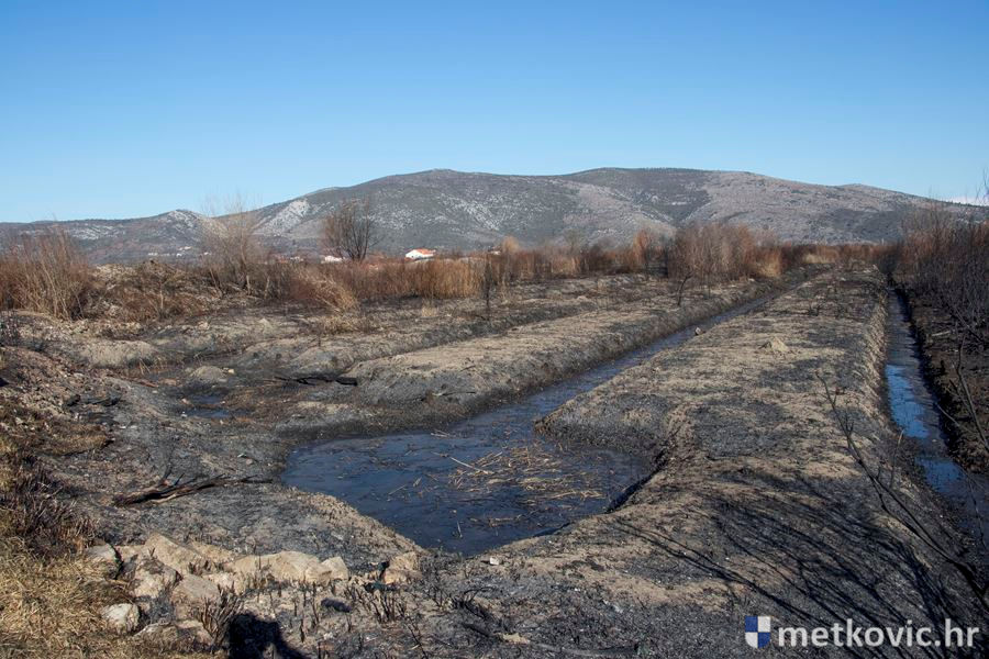 7.1.2017. - Snašao nas je led pa smo brzo zaboravili na nedavnu vatru. Stoga smo se danas odvezli do Vida kako bismo s uzvisine fotografirali posljedice koje su nedavni požari ostavili na zaštićeni Posebni ornitološki rezervat močvarno područje Prud, ali i na površine uz cestu Metković-Vid.