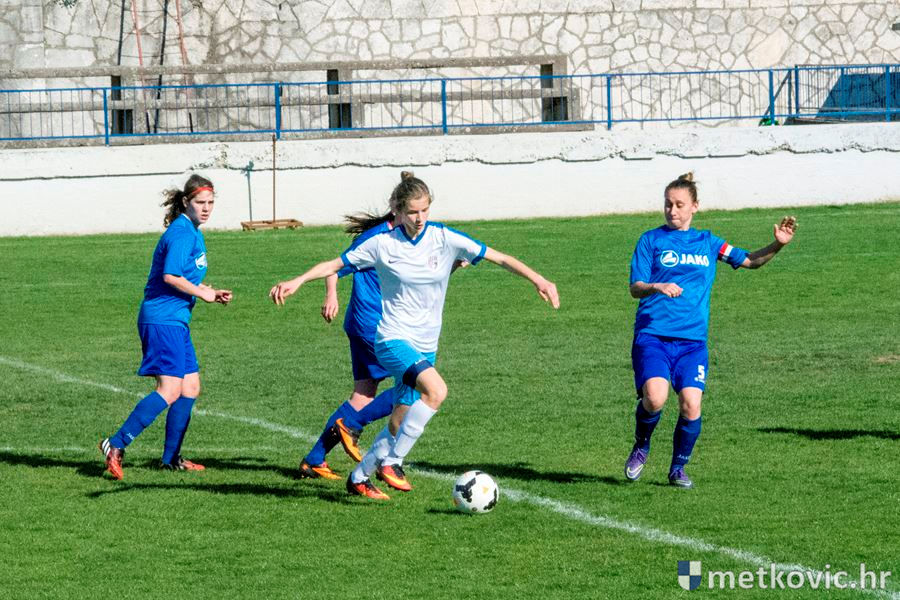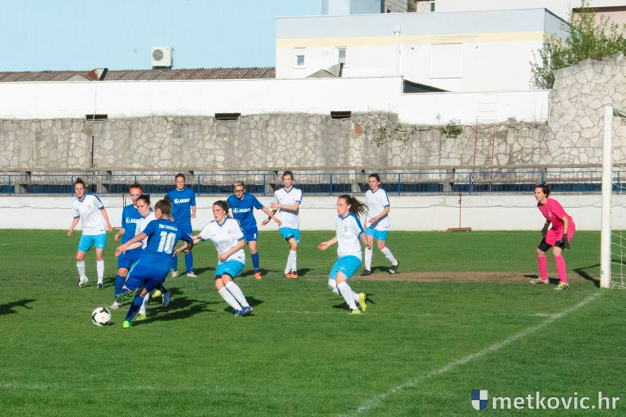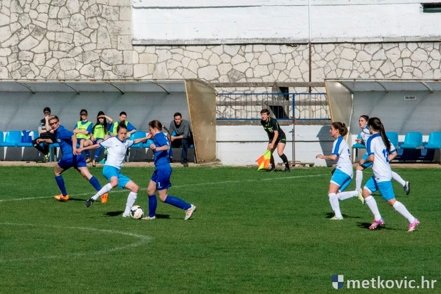 Utakmicu su obje ekipe otvorile visokim tempom uz često preskakanje igre na sredini terena. U devetoj minuti susreta gostujuće igračice nakon gužve u kaznenome prostoru pogotkom Ivane Katunar dolaze do vodstva. Nastavak poluvremena donio je izjednačenu igru u kojoj su domaće igračice često dolazile u završnicu napada, ali nisu uspijevale poentirati. Pri kraju poluvremena, u 40. minuti susreta, gostujuće igračice drugim zgoditkom Ivane Katunar povećavaju vodstvo na 0:2, s čime se otišlo na predah.