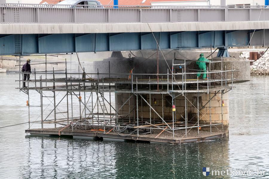 27.4.2017. - Uskoro će biti gotov gornji dio konstrukcije Lučkoga mosta na koji se upravo nanosi završni plavi nalič. U tijeku su i radovi na betonskoj stopi koja je na kamene stupove nalivena prilikom rekonstrukcije 1972./73., a uzeti su i uzorci betonske podloge kolnika pa će se nakon njihove analize znati daljnji postupci.