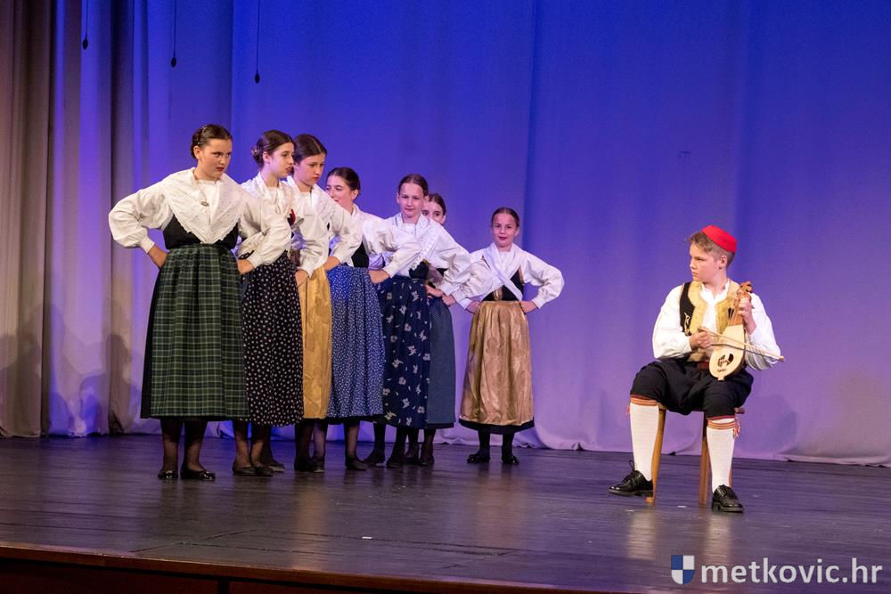 Program je otvorila Dječja skupina KUD-a Metković, a za njima prava su atrakcija bili mališani iz KUD-a Sv, Juraj iz Osojnika, koji su izveli ples Linđo. Slijedile županijske skupine, a novost su bile studentice Muzičke akademije u Zagrebu koje su zaojkale kao da su sišle s Dinare. Predstavili su se i gosti iz Letovanića te predstavnici Smotre folklora 'Đakovački vezovi i Smotre folklora Karlovačke županije.