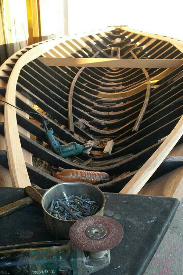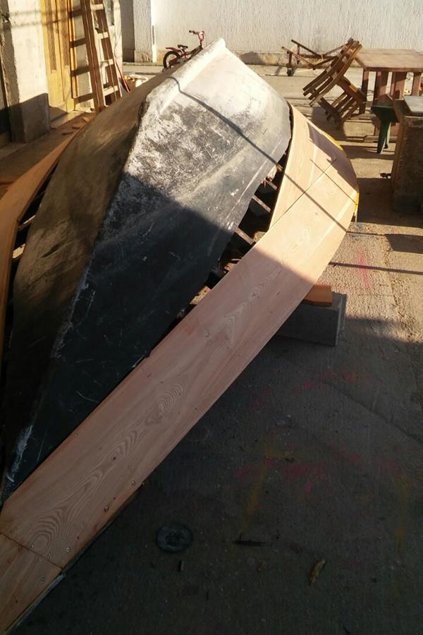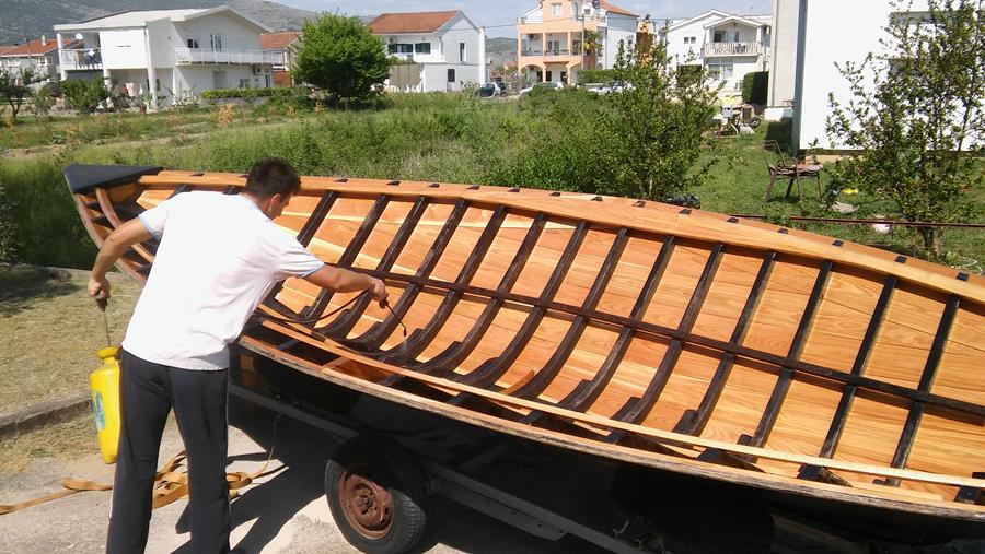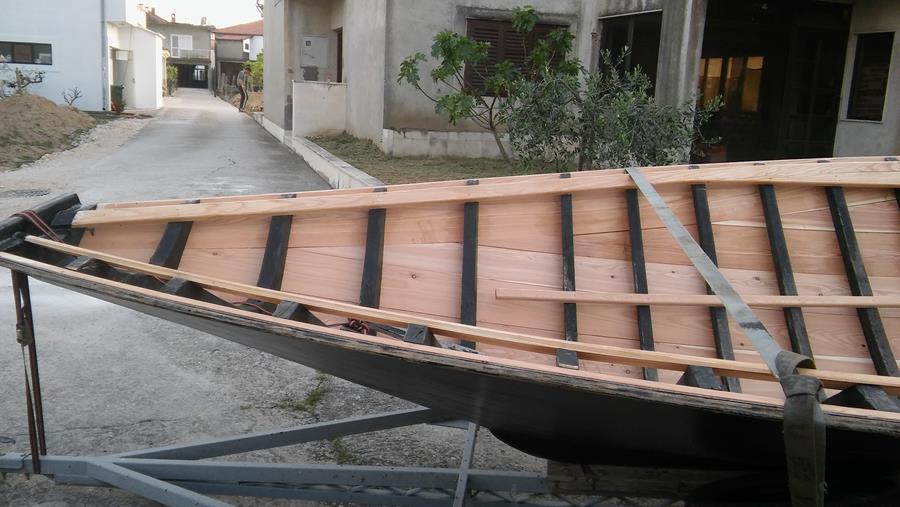 Metković, 18.5.2017. - Vrijedni lađari UL Crni put, koja je prije tri godine ponijela Veliki Domagojev štit, vratili su život vidno propaloj staroj lađi. Ne računajući svoj rad, u drvenu i plastičnu oplatu uložili su 19 000 kuna.