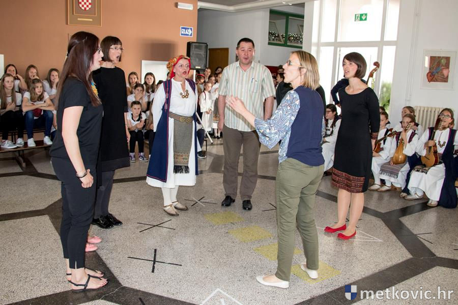 Zadovoljstvo radom djelatnika i učenika OŠ don Mihovila Pavlinovića izrazila je gradonačelnica Ujdur te im čestitala njihov Dan škole. U programu su nastupili učenici, koje je pripremila učiteljica Katarina Petković Galov, te učenici članovi KUD-a Metković, koji su izveli folklorne igre Kamenčići, Tikve i Pada kiša.