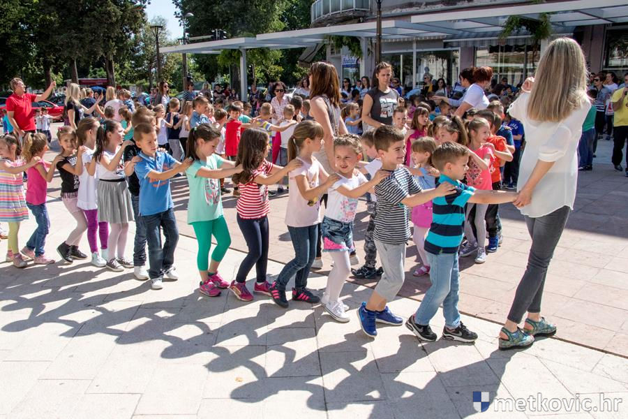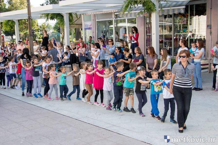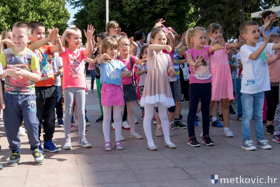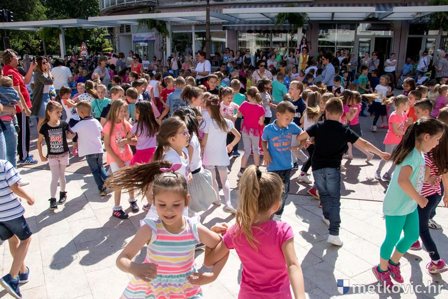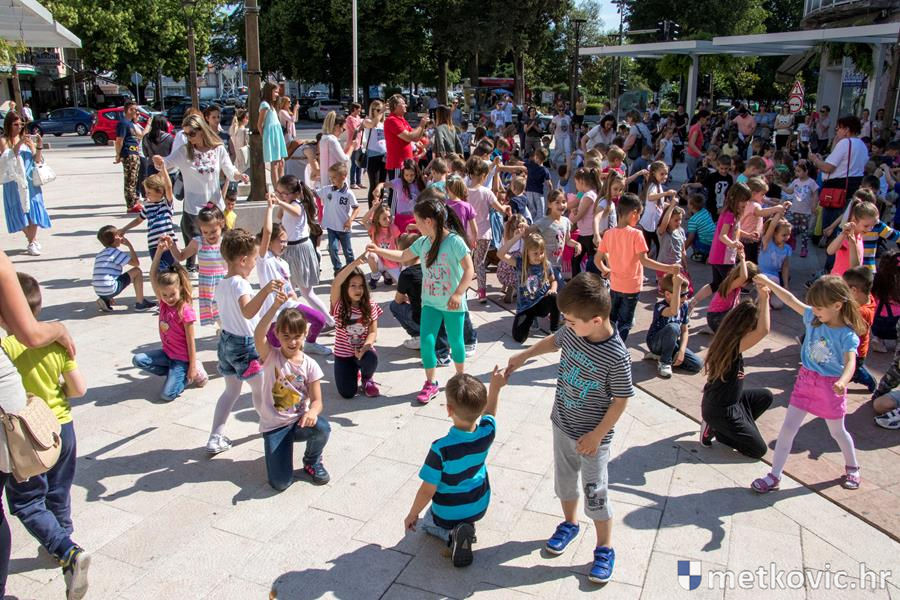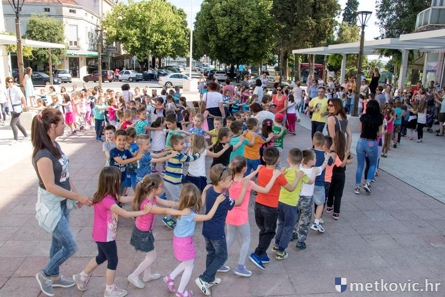 Metković, 22.5.2017. - U sklopu Dana otvorenih vrata Dječjih vrtića Grada Metkovića danas je na Trgu kralja Tomislava održana plesna priredba na kojoj je pod vodstvom Dalibora Dominikovića nastupilo dvjestotinjak djece srednjih i starijih skupina.